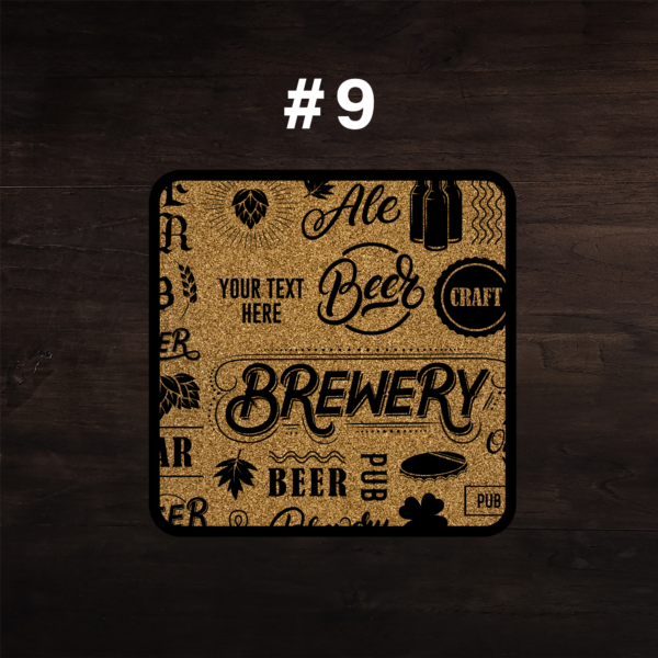 Stilige håndlagde ølbrikker produsert i Norge. Brikkene er 5 mm tykke og består av to lag: 2 mm MDF og 3 mm kork på toppen. Solide brikker som kommer i 9 forskjellige design.